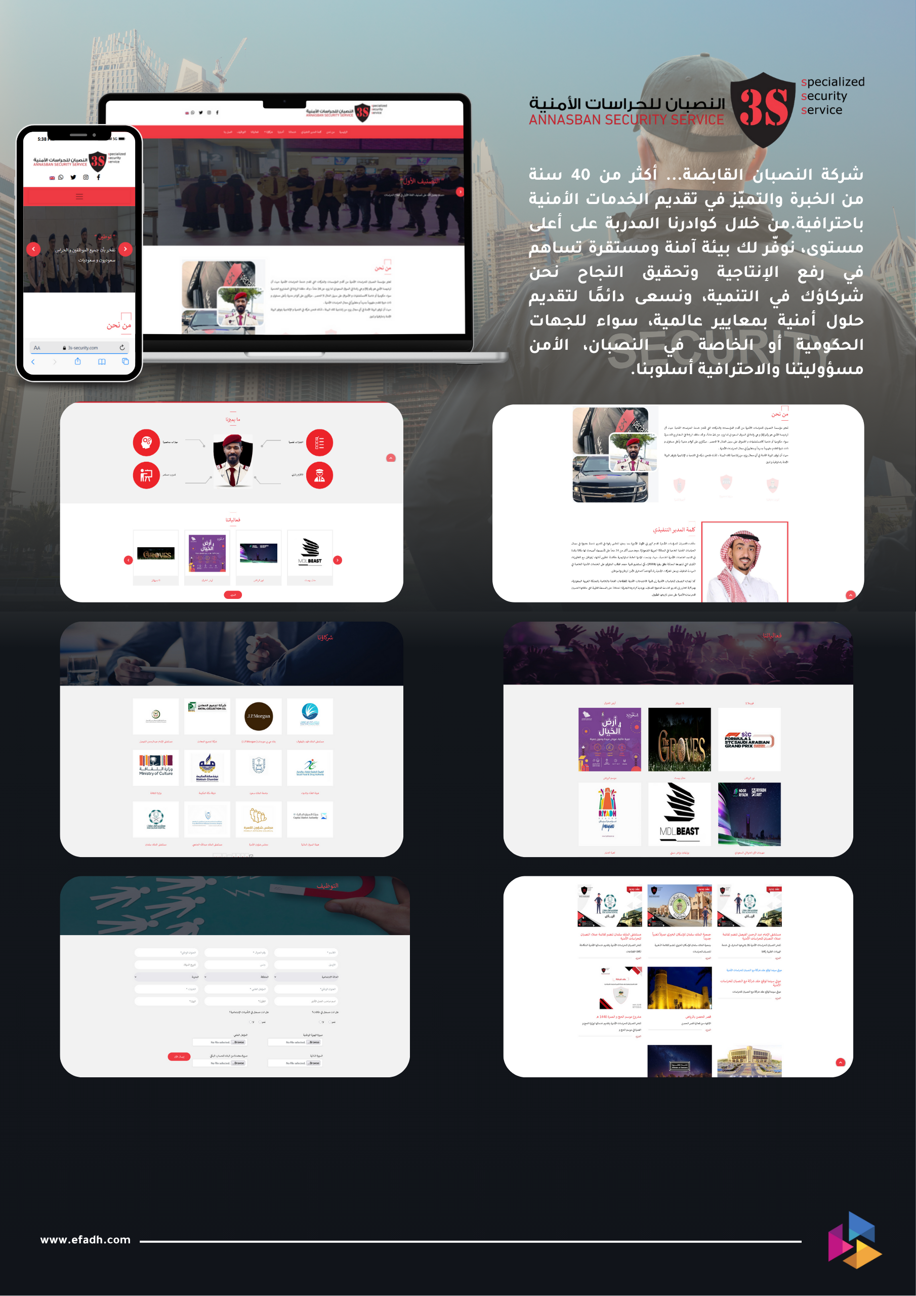 تم بحمد الله إطلاق الصفحة التعريفية الخاصة بخدمات شركة النصبان القابضة الأمنية عبر شركة إفادة لتقنية المعلومات، لتُبرز خبرة تمتد لأكثر من 40 عامًا في مجال الأمن والحماية.