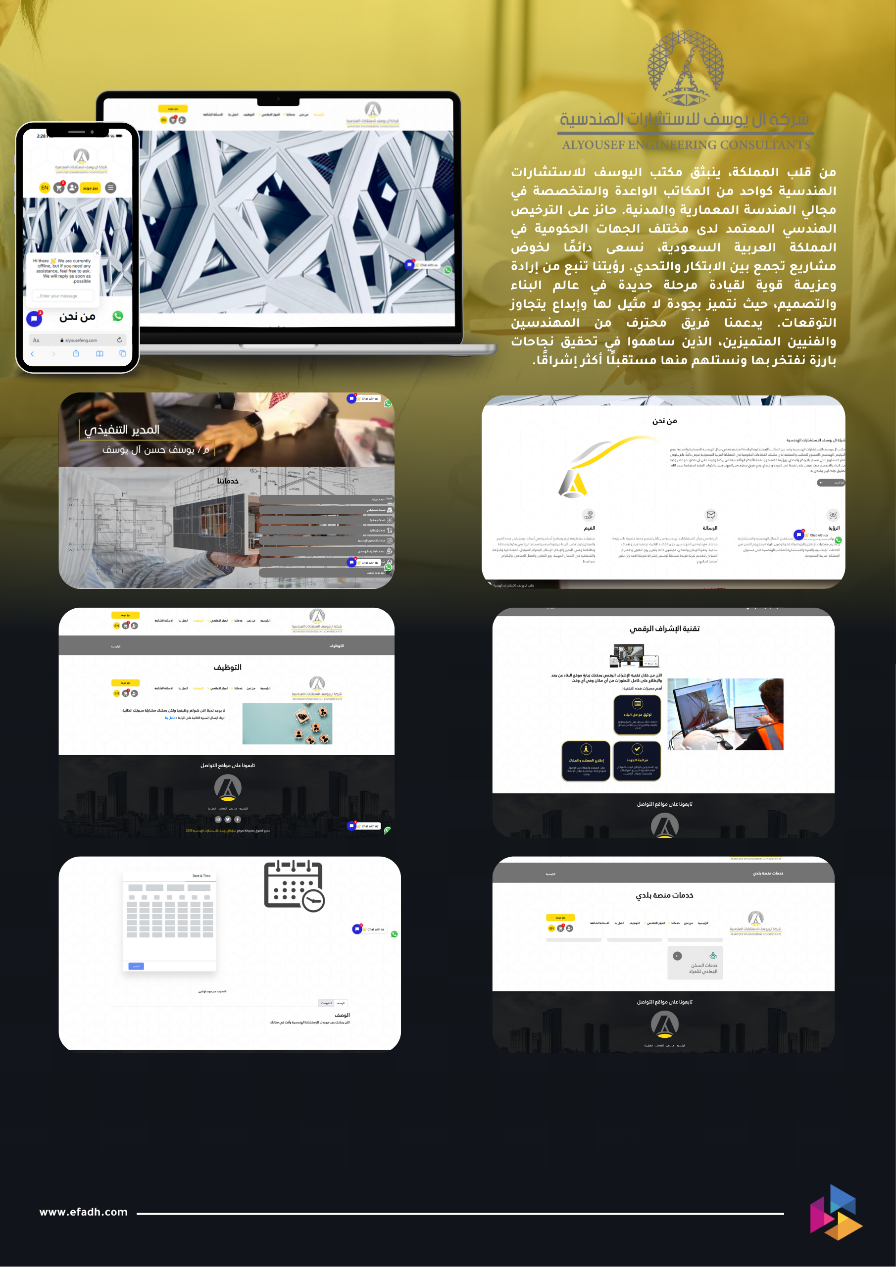 تم بحمد الله إطلاق الصفحة التعريفية لـ “مكتب اليوسف للاستشارات الهندسية” عبر شركة إفادة لتقنية المعلومات، ليُسلّط الضوء على مكتب هندسي واعد يجمع بين التخصص، الابتكار، والطموح في مجالي الهندسة المعمارية والمدنية.