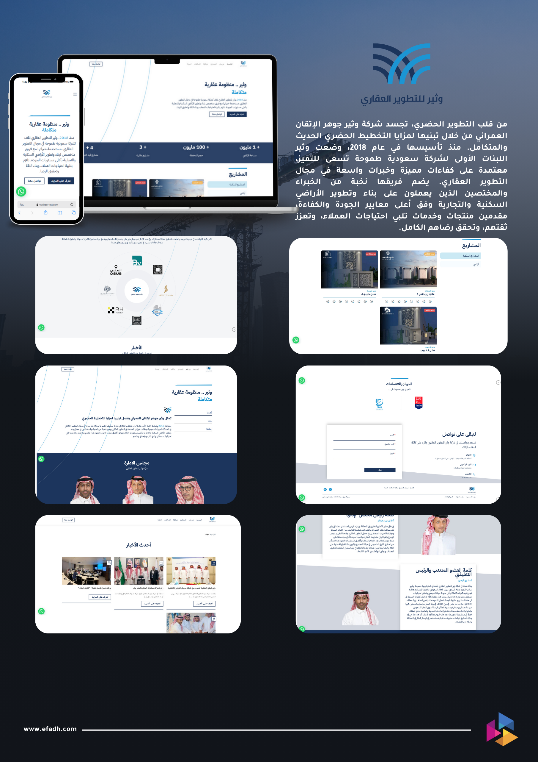 تم بحمد الله إطلاق الصفحة التعريفية لشركة “وثير” عبر شركة إفادة لتقنية المعلومات، لتكون واجهة حديثة تعكس روح الإتقان والتخطيط العمراني المتكامل الذي تنتهجه الشركة منذ انطلاقتها.